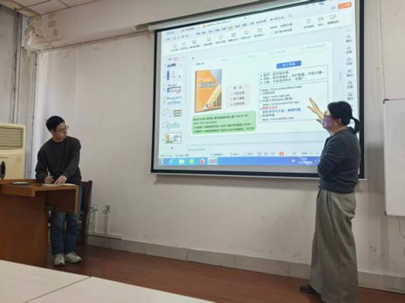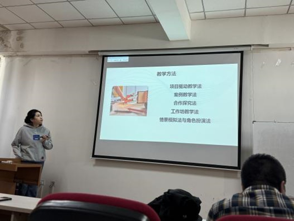 新教师围绕专业相关教学内容,从教学目标、教学重难点、教学方法、课堂互动设计等方面展开授课。他们精神饱满、思路清晰,借助多媒体课件与板书相结合直观呈现教学内容,展现了扎实的专业功底和积极的教学态度。