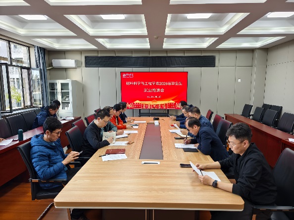 王金彪首先宣读学院毕业生就业工作领导小组名单、各班级就业目标分解情况、就业工作包联体系及名单;通报了2026届毕业生目前各班级就业去向落实情况;介绍了学院促就业一系列举措,包括拓展优质企业资源、举办专场招聘会、加强简历撰写与面试技巧培训、提供个性化咨询指导等,表示学院将整合各方资源,为毕业生提供全方位、精准化的就业服务;要求各班主任精准掌握毕业生的就业意向和进展情况,从就业形势、行业需求、职业发展等方面教育引导毕业生积极参加各类校园招聘会,抓住秋招的黄金期尽早落实就业去向。