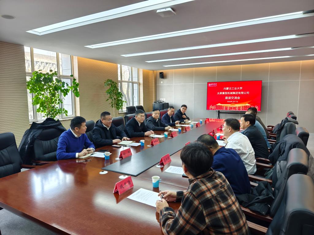 1月17日下午,内蒙古工业大学与太原重型机械集团有限公司合作座谈会在明德楼204举行。太重集团营销总监韩玉明、校党委副书记赵增武出席。太重集团相关部门及分公司负责人、学院领导班子成员及相关人员参加座谈。