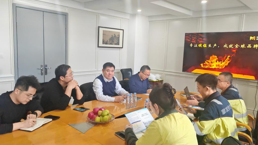 蒙发铁合金有限责任公司总经理李宏对调研组一行到来表示热烈欢迎,介绍了企业的发展历程、管理体系、企业文化、生产情况、主要产品及市场等。